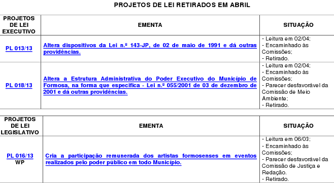 CLIQUE AQUI PARA VER A LISTA DE PROJETOS RETIRADOS EM ABRIL