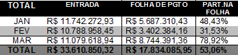 No entanto, em relação à Folha de Pagamento a mesma sofreu uma abrupta subida de mais de 30% em fevereiro em relação a janeiro num momento onde os servidores sofriam redução por conta do cálculo do quinquênio para depois subir dentro da normalidade em torno dos previsíveis 5,5%. De todo modo o montante da folha no fundo representa 44,34% do trimestre conforme tabela abaixo.
