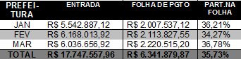 Através de levantamento de dados junto ao site do Tribunal de Contas dos Municípios – TCM, o SINPREFOR realizou o estudo do impacto dos recursos nas Folhas de Pagamento dos servidores públicos municipais de Formosa no período de janeiro a março.